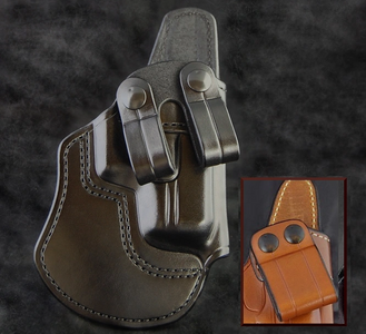 Drawing on elements of Bruce Nelson's "Summer Special" design, this Inside the Waistband holster features a traditional "split belt loop", OR a single belt loop attachment, secured by Directional Snaps.